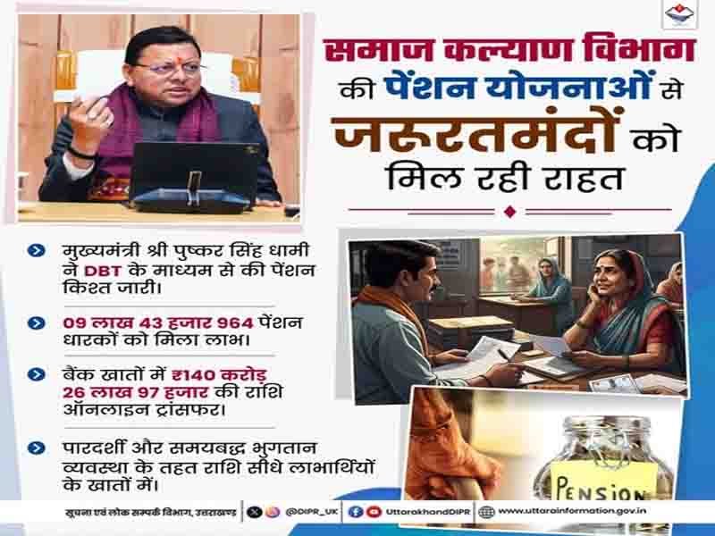 मुख्यमंत्री धामी के निर्देशानुसार, समाज कल्याण विभाग की पेंशन योजनाओं से जरूरतमंदों को मिल रही राहत