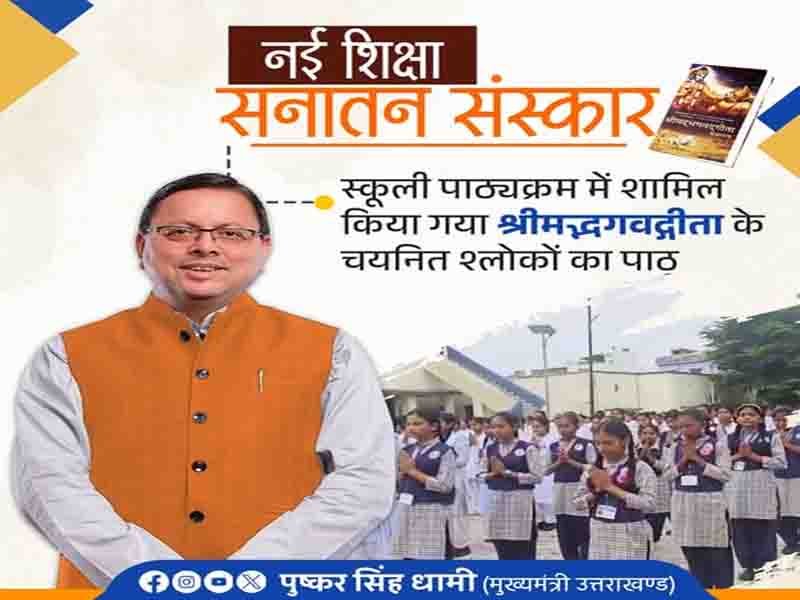 हमारी सरकार द्वारा विद्यालयी पाठ्यक्रम में श्रीमद्भगवद्गीता के चयनित श्लोकों को शामिल किया गया है:” मुख्यमंत्री