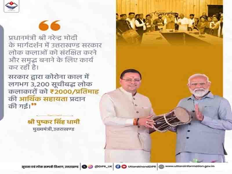 उत्तराखण्ड सरकार लोक कलाओं को संरक्षित करने व समृद्ध बनाने के लिए कार्य कर रही है। Posted on October 10, 2025October 10, 2025 by Admin Shareदेहरादून: “प्रधानमंत्री नरेन्द्र मोदी के मार्गदर्शन में उत्तराखण्ड सरकार लोक कलाओं को संरक्षित करने व समृद्ध बनाने के लिए कार्य कर रही है।”: मुख्यमंत्री पुष्कर सिंह धामी