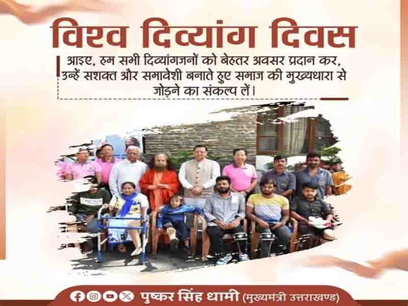 Uttarakhand हमारी सरकार प्रदेश में दिव्यांगजनों के सशक्तिकरण और आत्मनिर्भरता के लिए सतत कार्य कर रही है:” मुख्यमंत्री Admin December 3, 2025 0 ShareShare देहरादून: आदरणीय प्रधानमंत्री Narendra Modi जी के कुशल नेतृत्व और दूरदर्शी मार्गदर्शन में आज दिव्यांग भाई-बहनों के लिए आत्मविश्वास […]
