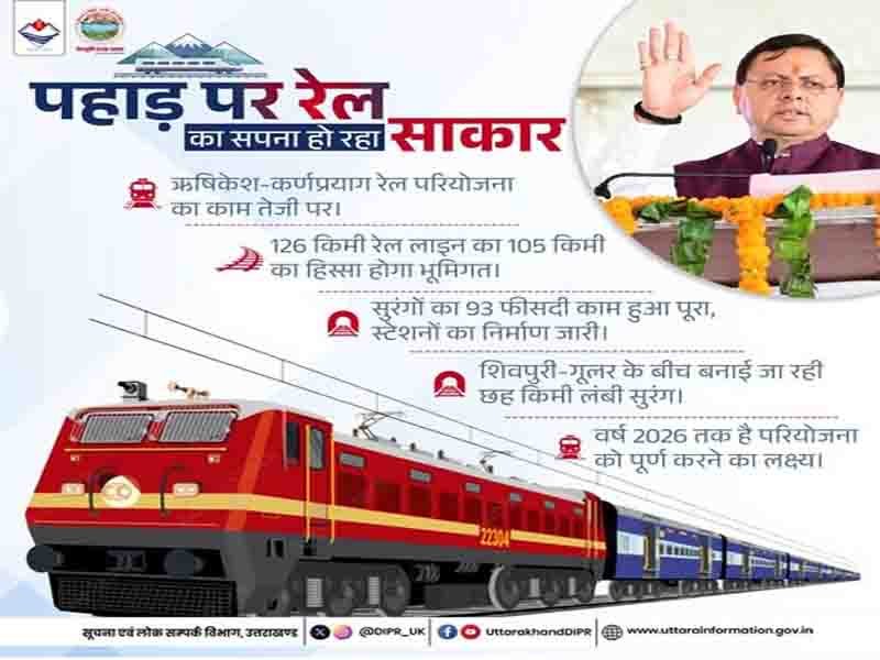 प्रधानमंत्री के मार्गदर्शन एवं मुख्यमंत्री के कुशल नेतृत्व में पहाड़ पर रेल का सपना हो रहा साकार