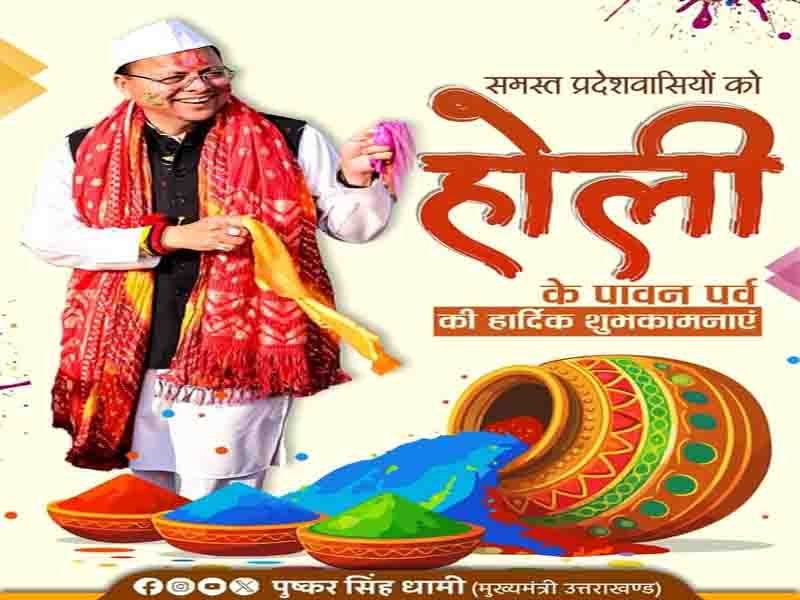 देहरादून: समस्त प्रदेशवासियों को हर्षोल्लास के पावन त्योहार होली की हार्दिक बधाई एवं शुभकामनाएं। यह पर्व समाज में एकता और अपनत्व का रंग घोलकर प्रेम, सौहार्द और भाईचारे का संदेश देता है।