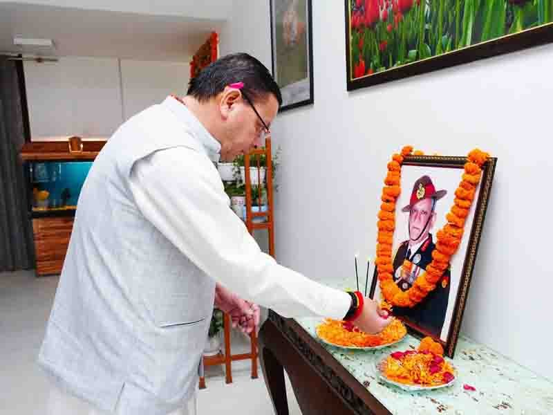 देहरादून: मुख्यमंत्री पुष्कर सिंह धामी ने भारत के प्रथम चीफ ऑफ डिफेंस स्टाफ, पद्म विभूषण से अलंकृत तथा उत्तराखण्ड के गौरव, जनरल बिपिन रावत की जयंती पर मुख्यमंत्री आवास में उनके चित्र पर श्रद्धा सुमन अर्पित कर उनका भावपूर्ण स्मरण किया।