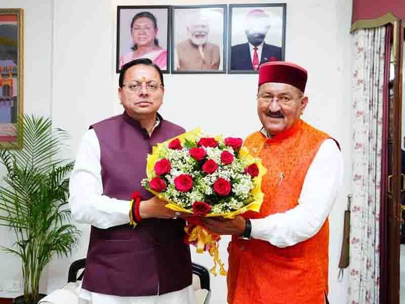 देहरादून: मुख्यमंत्री पुष्कर सिंह धामी से शासकीय आवास पर रुद्रप्रयाग विधानसभा क्षेत्र से विधायक एवं नवनियुक्त कैबिनेट मंत्री  Bharat Singh Chaudhary  ने भेंट की।